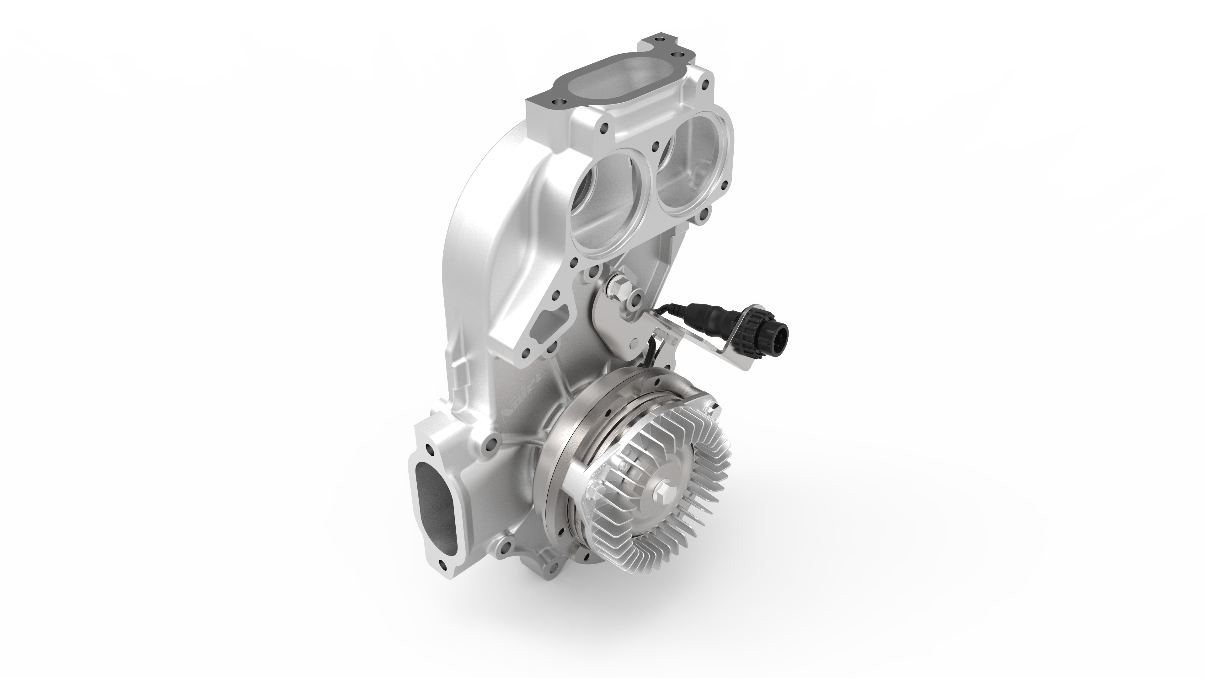 Die riemengetriebene Kühlmittelpumpe arbeitet nach dem Prinzip einer Kreiselpumpe. Mit Hilfe eines rotierenden Laufrades wird die Zentrifugalkraft für den Transport von Flüssigkeiten genutzt. Auf dem Lager der Wasserpumpe ist eine zusätzliche zweistufige Kupplung integriert. Diese wird elektrisch gesteuert. Die Kupplung ermöglicht (in angeschlossener Stufe) eine direkte Leitung von der Riemenscheibendrehzahl am Laufrad.