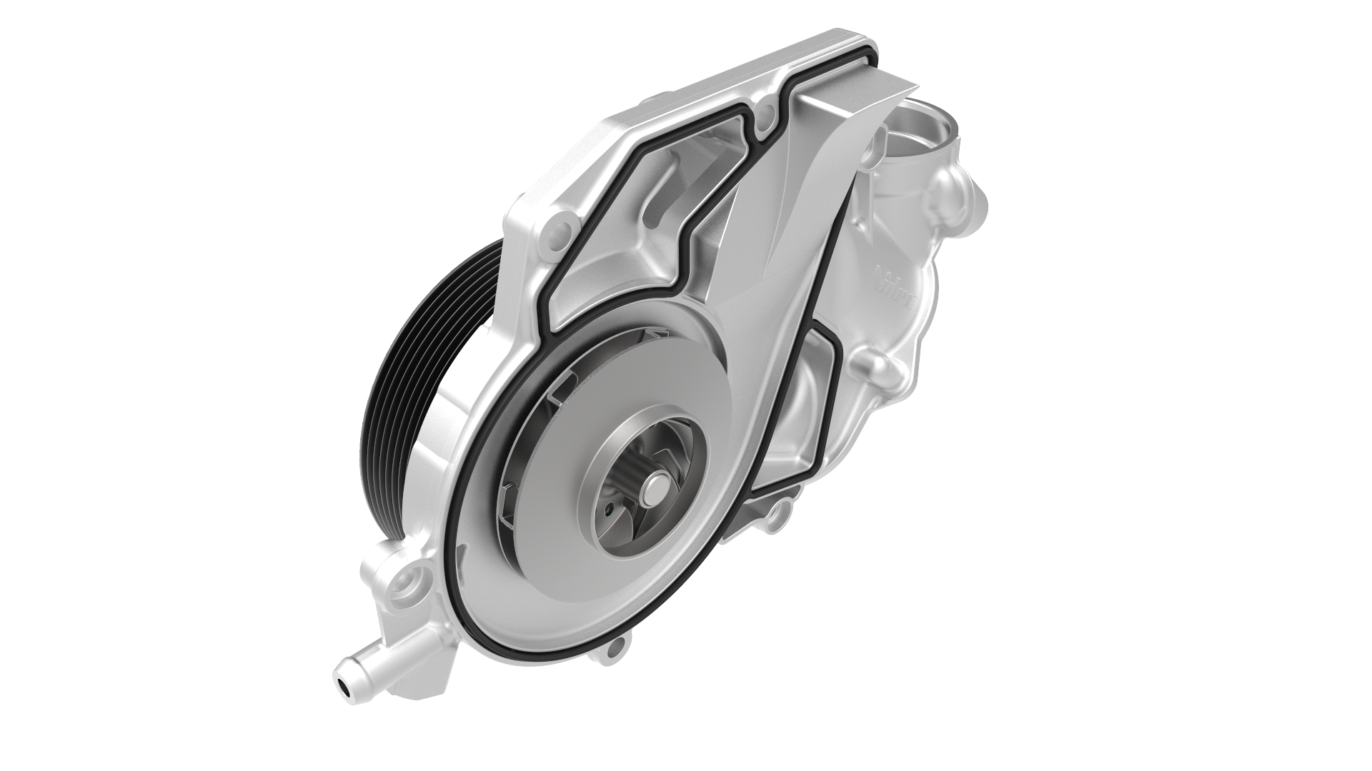 Die riemengetriebene Kühlmittelpumpe ist beispielgebend für das Prinzip einer Kreiselpumpe. Während mittels Zentrifugalkraft Flüssigkeit transportiert wird, ermöglicht die elektrisch gesteuerte Kupplung eine direkte Leitung von der Riemenscheibendrehzahl am Laufrad.